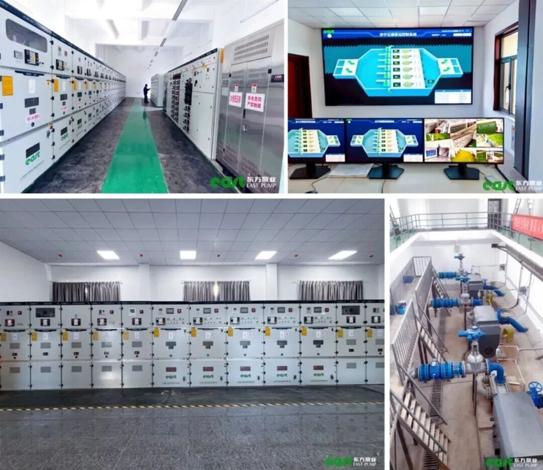 在大型泵站项目中,我们提供包括高压进线柜、计量柜、PT柜、出线柜、高压软启动柜、高压补偿柜及配套直流屏在内的全套配电及控制解决方案。这套系统发挥着至关重要的作用: