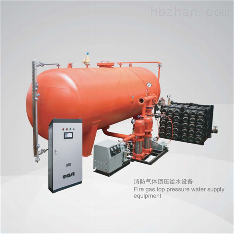 是以GB50016《建筑设计防火规范》为设计依据,符合国家公共安全国家标准GB27898.4《固定消防给水设备第4部分:消防气体顶压给水设备》的要求,可满足消防火情初期十分钟的灭火用水量。该设备由气压水罐、稳压装置、集装装置、止气装置、电气操控系统等组成,在设计相同的有效水容积情况下,其罐体容积是普通气压罐的1/3-1/5,占地面积更小且供水压力平稳、性能安全可靠,是替代高位水箱或普通气压罐的产品,是消防技术解决方案中更加理想的消防气压给水设备。